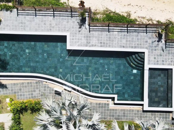 Grande piscine commune avec une vue spectaculaire sur l’océan