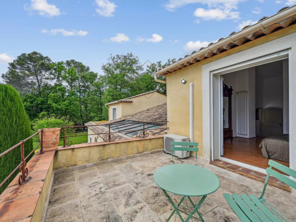 Plongez dans une ambiance estivale avec une piscine privée étincelante, entourée d’une terrasse ensoleillée, parfaite pour vos moments de détente ou pour organiser des soirées conviviales. Les belles terrasses et les balcons prolongés des chambres offrent une vue dégagée et apaisante sur la nature environnante.