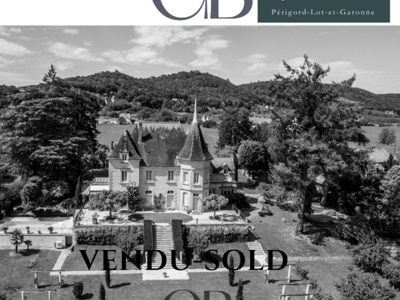VENDU …….Le château est situé en Dordogne, plus particulièrement dans le Périgord Noir, dont la renommée gastronomique et le patrimoine architectural ne sont plus à démontrer. La demeure jouit d’une remarquable situation nichée dans le triangle d’or. À seulement quelques kilomètres de la célèbre ville de Sarlat, qui assure l’ensemble des besoins et ressources. Les activités culturelles sont nombreuses : le festival du film de Sarlat, les fameuses grottes de Lascaux, et bien d’autres sites hérités d’un riche passé. Les grands axes de communication sont à proximité, avec l’autoroute A20 (Paris-Toulouse) à 19 km et l’aéroport de Brive à 35 km. Orienté sud, le château date du XIXe siècle. Il est construit en moellons sous tuiles plates. Il se compose d’un corps central flanqué d’une tour octogonale en pierre de taille, avec de nombreuses caractéristiques architecturales telles que des chaînes d’angles, des corniches en entablement à moulures et denticules qui contribuent au charme de ce bâtiment. Le château offre une surface exploitable de plus de 600 m2, dont 500 m2 habitables sur plusieurs niveaux, l’ensemble étant surmonté d’un grenier qui offre des perspectives d’utilisation. L’ensemble nécessitera une mise à niveau pour atteindre les standards exigés actuellement.Le Château est ainsi organisé :-Au rez-de-chaussée : une large entrée avec départ d’escalier, petit et grand salons, salle à manger, cuisine, bureau, chambre avec salle d’eau et WC. À droite du petit salon se trouve une véranda, et le grand salon ouvre sur une terrasse de belle dimension exposée sud avec la piscine en contrebas.-Au premier étage : desservi par un bel escalier en chêne, se trouvent quatre chambres, dont une suite dans la tour octogonale, trois salles de bains, un bureau et un grand espace dressing/lingerie.-Au second étage : deux chambres mansardées, une salle d’eau avec WC et un grenier de 100 m2.-Au 3ème étage : un grenier.-Le sous-sol, d’une surface de 120 m2 et accessible par l’escalier intérieur ainsi que par l’ascenseur, propose de nombreuses options de rangement : deux caves à vin, une cave, quatre réserves, une chaufferie et un local ascenseur. Détail important, le château est doté d’un ascenseur qui dessert les 4 niveaux, du sous-sol au grenier.Deux entrées sont disponibles pour pénétrer dans cette propriété, mais une est particulièrement charmante avec son allée de Cèdres bleus. Un joli parc de 2 hectares environ s’étend devant la façade Sud du Château. De l’autre côté de la petite route au Nord, se trouve un pré de 2 hectares de bonne terre actuellement cultivées pour le fourrage. Une grande piscine de 12×8, avec margelle en pierre, chauffage par pompe à chaleur est attenante à la terrasse principale du Château. Des bois et taillis non contiguës à la propriété d’une surface de 8h 82ca font aussi partie de la vente, l’ensemble représente environ 15 hectares. L’agence GUERIN BRUNO IMMOBILIER spécialiste des biens de caractères en Dordogne Périgord est à votre disposition pour vous faire découvrir ce bien, contact: Bruno GUÉRIN : +33 (0)6 42 02 03 26 Bien présenté dans le cadre du partenariat Exclusif de collaboration par délégation de mandat du Cabinet le Nail.