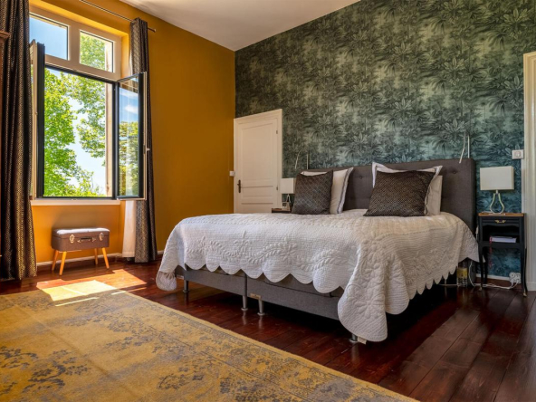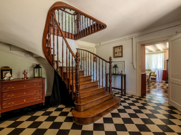 Dissimulé au bout d’une majestueuse allée bordée d’arbres centenaires, le manoir s’étend sur environ 332 m² habitables répartis sur trois niveaux lumineux et spacieux. Il est implanté sur un vaste parc arboré d’environ 1,7 hectare, agrémenté d’une piscine sécurisée (10×5 m) et d’une agréable terrasse ombragée.