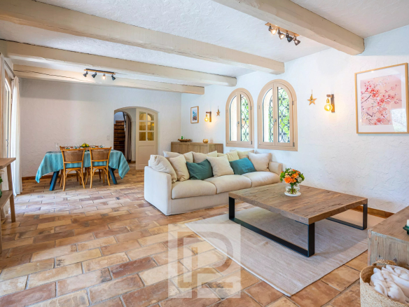 [CO-EXCLUSIVITÉ] Idéalement située au cœur d’un domaine sécurisé, à proximité immédiate des commodités, cette élégante villa provençale de charme, rénovée en grande partie en 2020, séduit par la chaleur de ses intérieurs, majoritairement de plain-pied, ainsi que par son environnement bucolique et paisible.