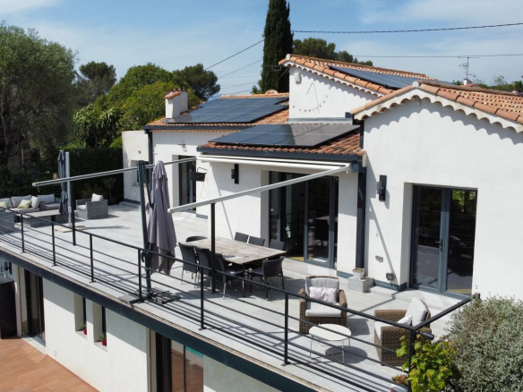 Située dans un cadre verdoyant et paisible, cette magnifique villa de 182 m² sur deux niveaux a été entièrement rénovée avec goût. Elle est implantée sur un beau terrain arboré, agrémenté d’arbres fruitiers (orangers, citronniers, pamplemoussiers) et dispose d’une grande piscine de 10 x 3,5 m.