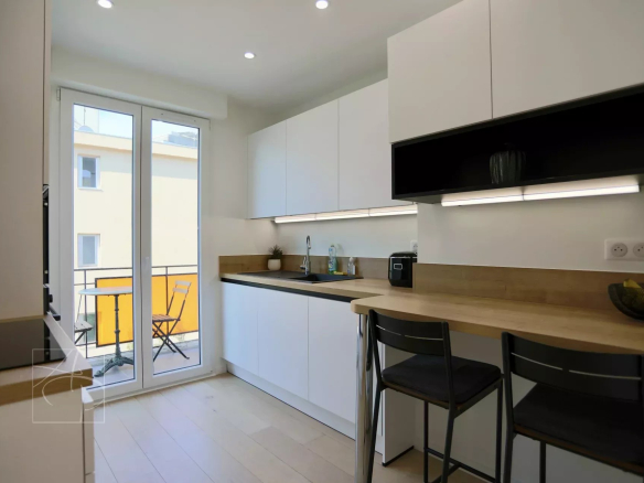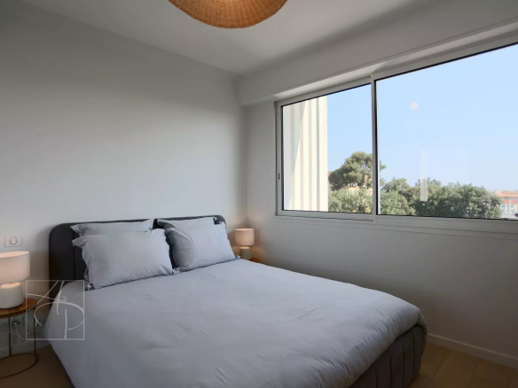 En Exclusivité à Cannes Montfleury secteur résidentiel à deux pas de la rue d’Antibes et de la croisette à pieds et à 3 minutes des commerces, au calme Beau 3p en dernier étage dans une petite copropriété de 15 appartements . L’appartement est extrêmement lumineux avec une vue dégagée sur Cannes et le massif de l’Esterel et une jolie échappée mer. Aucun travaux à prévoir. L’appartement a été entièrement rénové avec de belles prestations clim intégrée réversible, double vitrage, cuisine indépendante avec électroménager neuf de qualité, volets électriques avec fermeture centralisée à l’entrée, stores, porte blindée. Il se compose d’un beau séjour avec trois baies vitrées ouvertes sur un balcon extérieur de 17m2 qui dessert tout l’angle de l’appartement, deux belles chambres dont une avec salle de douche intégrée. Une autre chambre avec sa salle de douche indépendante. Un toilette indépendant. L’appartement est vendu avec une cave au rez de chaussée de la résidence. Places privées non attitrées pour les copropriétaires avec une clef. Situation parfaite pour faire tout à pied tout en profitant d’une vue dominante et au calme.