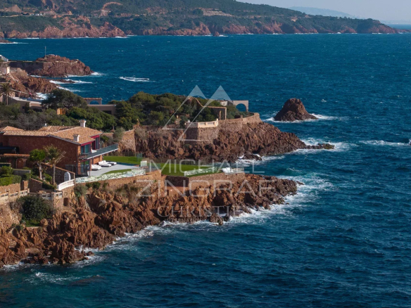 Située dans un cadre idyllique entre Cannes et Saint-Tropez, cette somptueuse villa pieds dans l’eau offre un panorama unique sur la Méditerranée, face à l’île des Vieilles et à proximité immédiate de la réserve naturelle du Cap Roux.