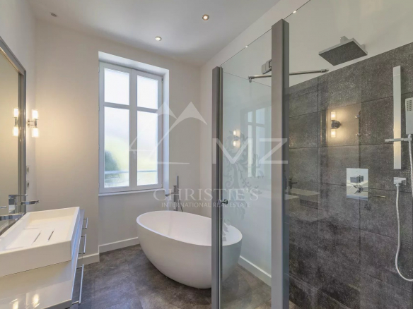 Demeure de charme des années 30 entièrement rénovée d’environ 350 m2, située au calme et à pieds de toutes les commodités de Saint-Raphaël, avec accès direct au port de Santa Lucia, ses restaurants et à la mer, via un portillon. 5 chambres principales, grand appartement indépendant de service avec 3 chambres supplémentaires, avec cuisine. Maison entièrement climatisée, chambre froide, grand parc arboré d’environ 2 600 m2 et piscine chauffée. À 50 minutes de l’aéroport de Nice et 40 minutes de la Croisette.