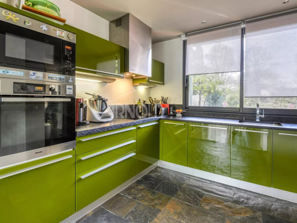 Baignée de lumière, avec vue sur le jardin et sa piscine , elle offre une circulation fluide et une optimisation des volumes la rendant à la fois chaleureuse et conviviale.