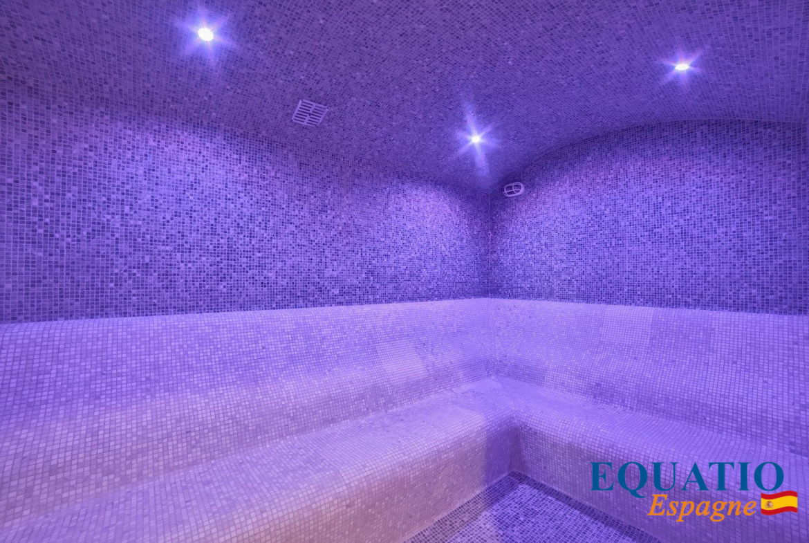 1 Piscine Extérieure – 1 Piscine Intérieure Chauffée – 1 court de Tennis – Spa – Sauna – Bain Turc – Salle de Fitness – Home Cinéma . . . et d’autres surprises.