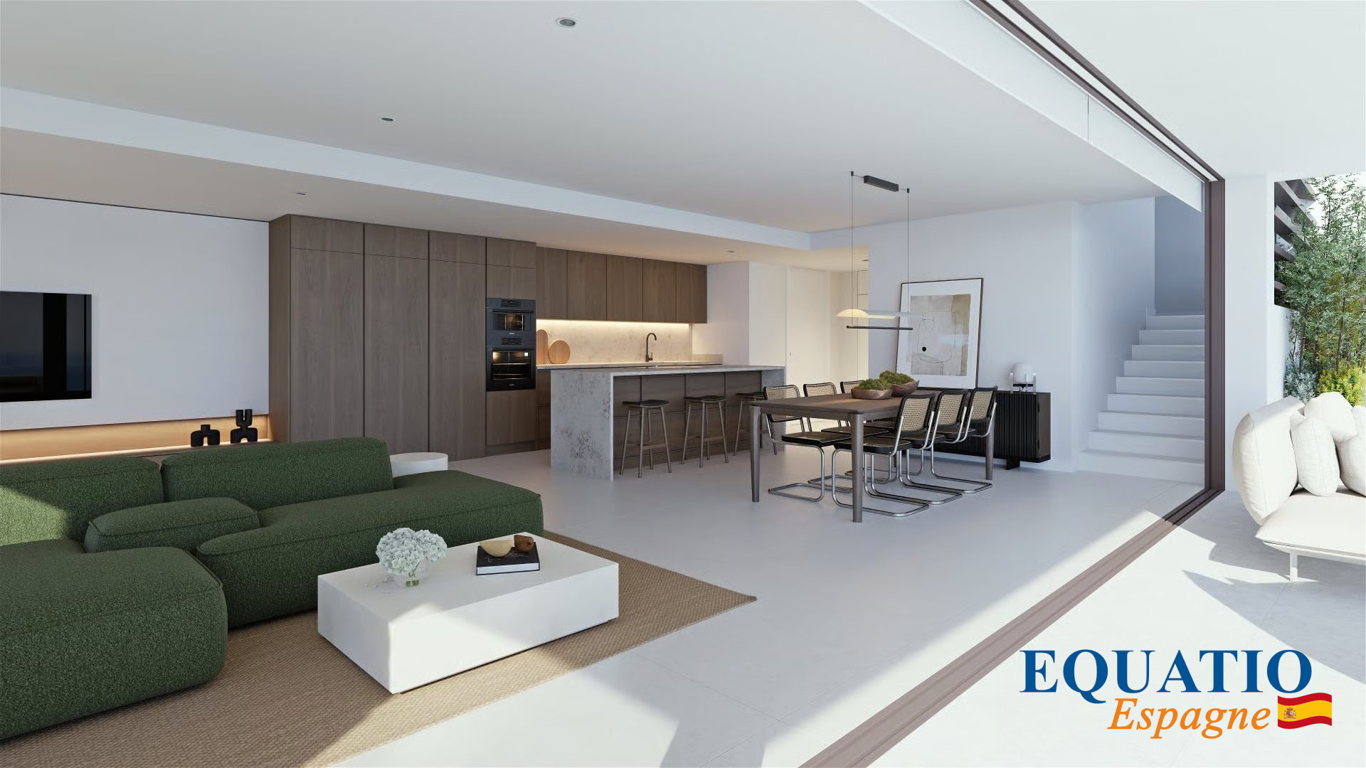 IMMENSE pièce de vie principale ouverte avec son salon, sa salle à manger et sa cuisine moderne entièrement Aménagée et Equipée, avec son îlot central.