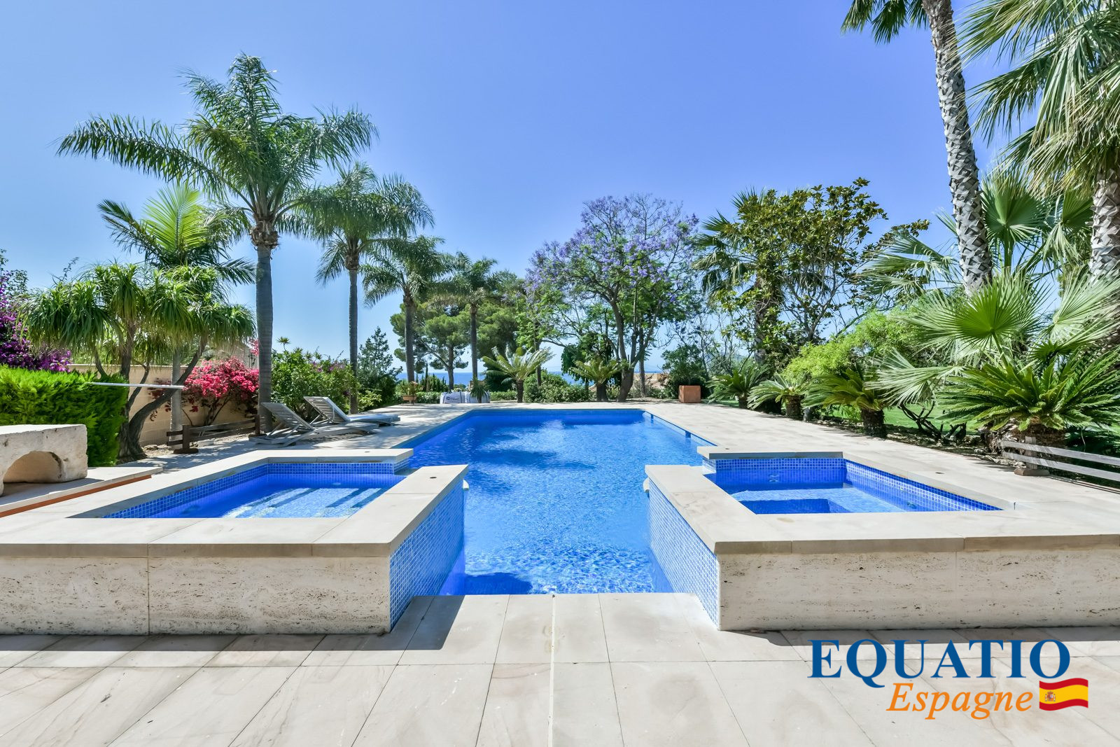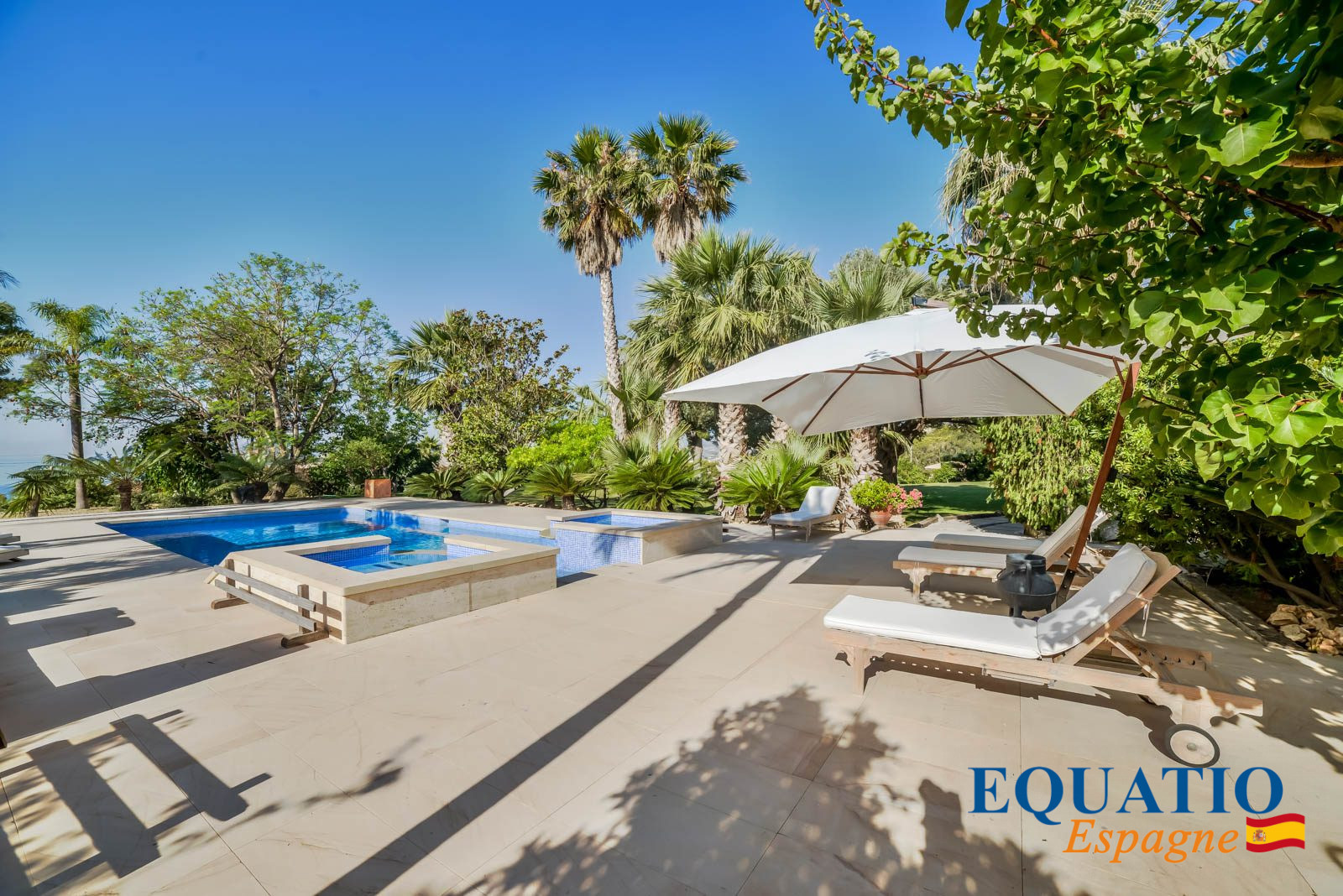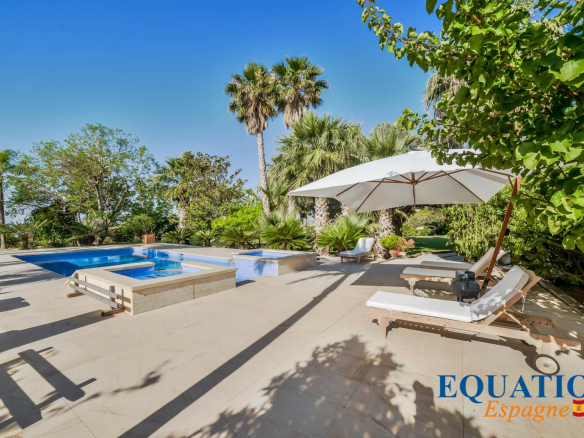 Grande piscine absolument magnifique avec son espace jacuzzi et un jardin avec tous les types d’arbres fruitiers tropicaux et un Court de Tennis Privé.