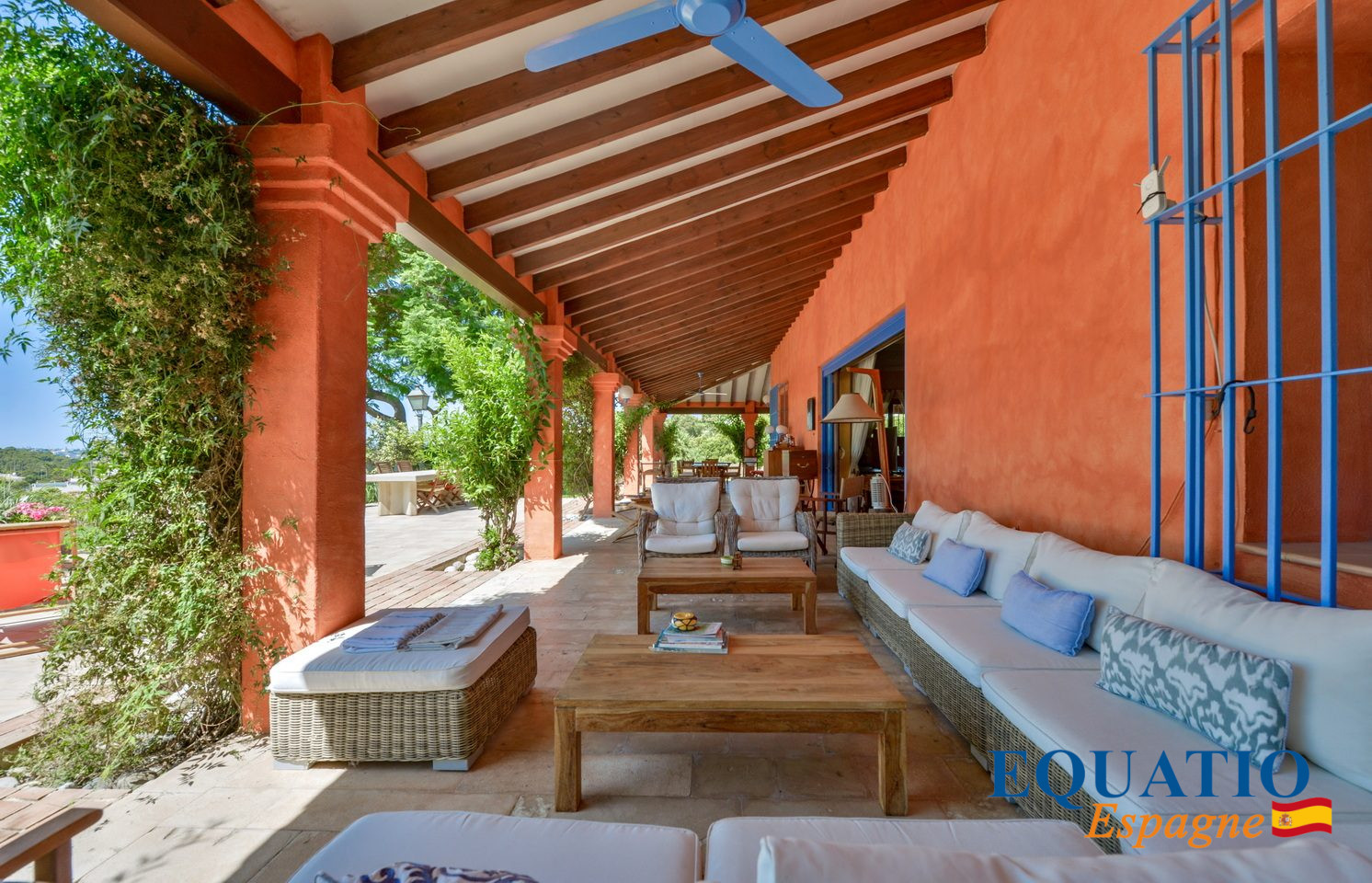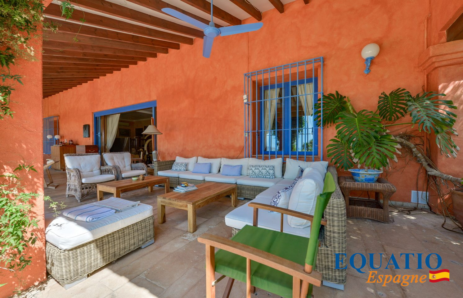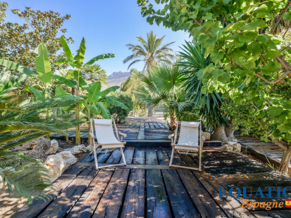 EXCEPTIONNELLE Villa de plain pieds, récemment rénovée de caractère rustique a un toit en bois, ce qui donne à l’ensemble une ambiance de style IBIZA.