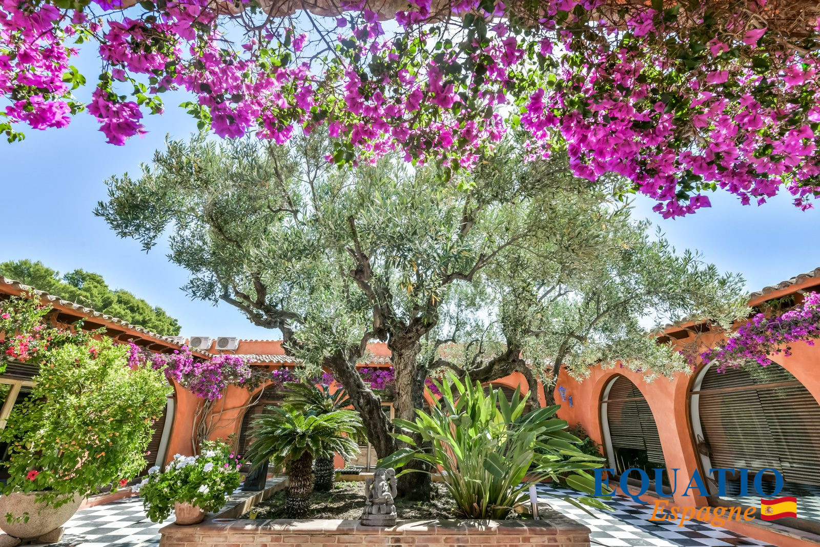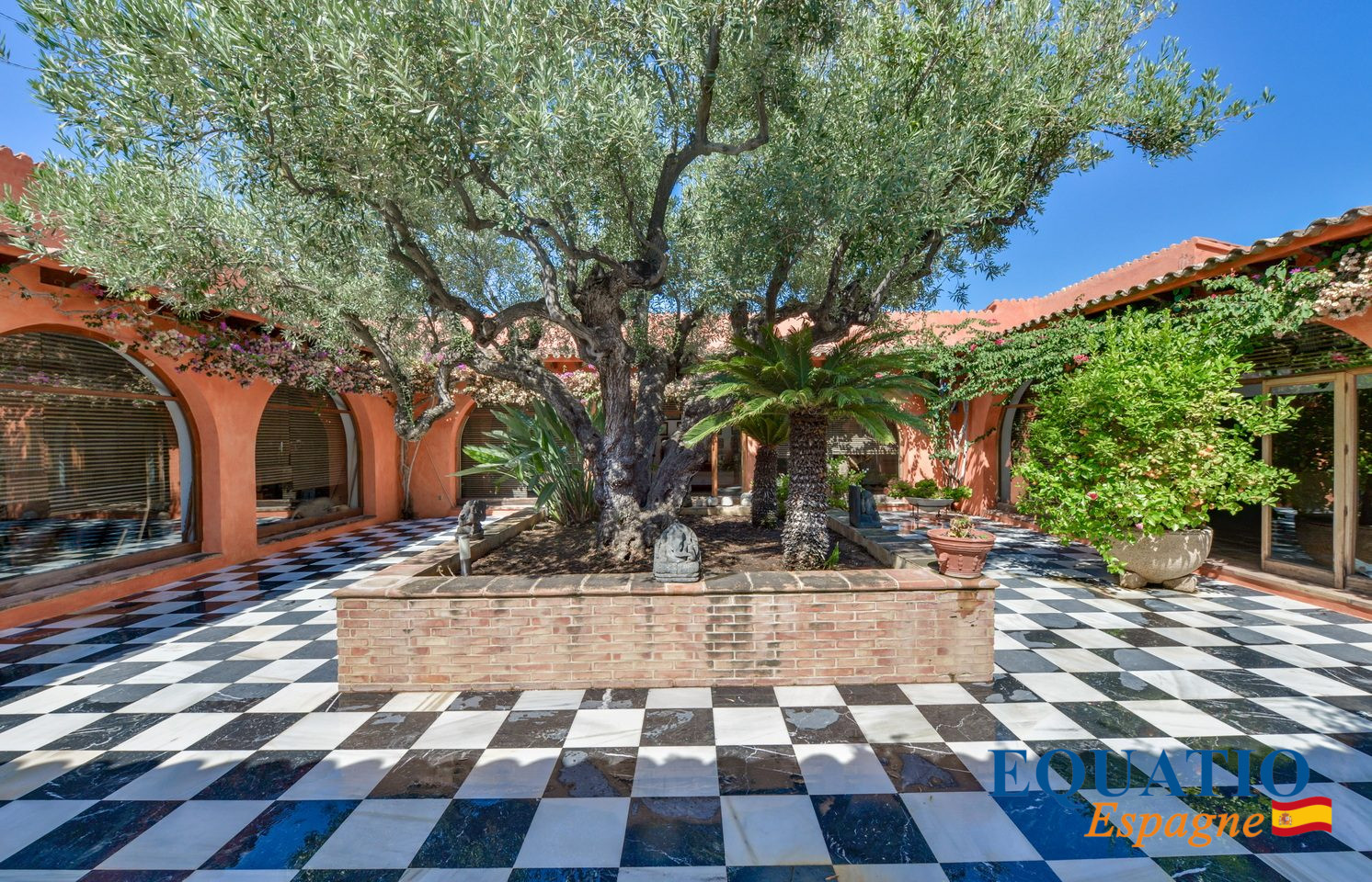 Terrain plat, avec patio intérieur fleurie.