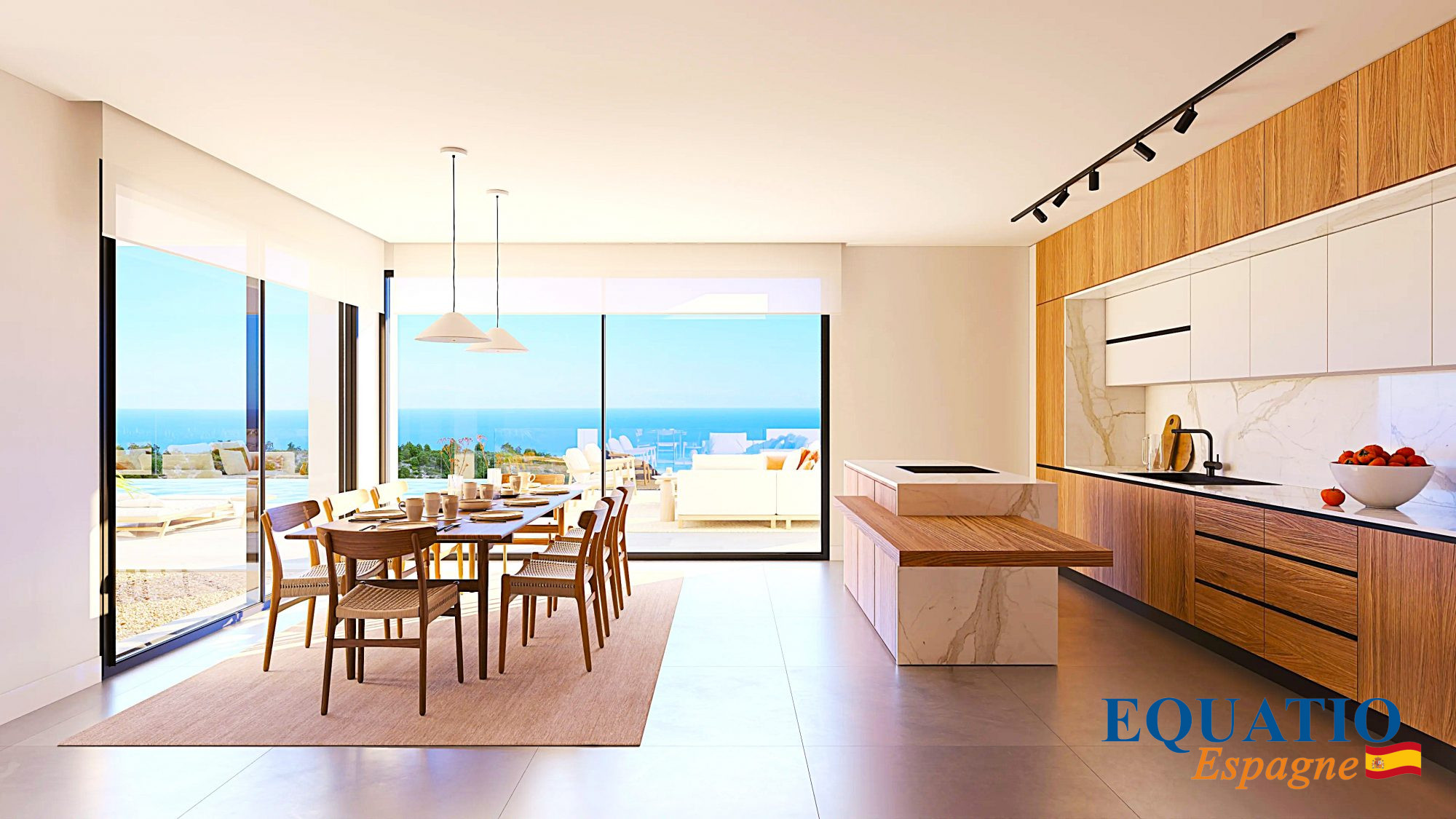 Spacieux salon / salle à manger avec accès directe à la grande terrasse . . . Vue Mer.