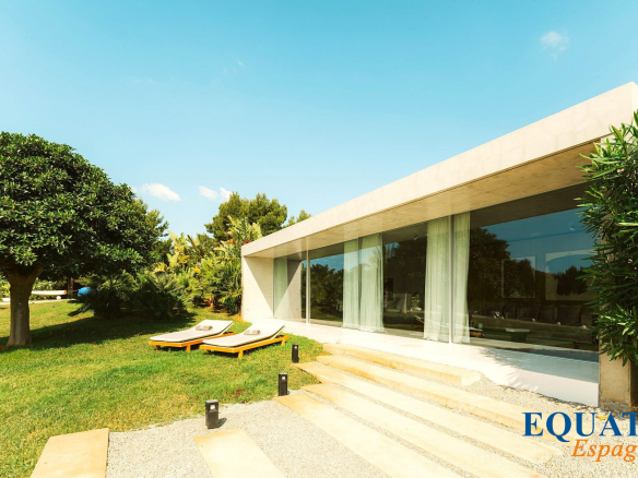 Cette exceptionnelle villa exclusive bénéficie d’emplacement stratégique à seulement 10 minutes des plages de Las Salinas, à 10 minutes de l’Aéroport et à 4 km du centre d’Ibiza,.