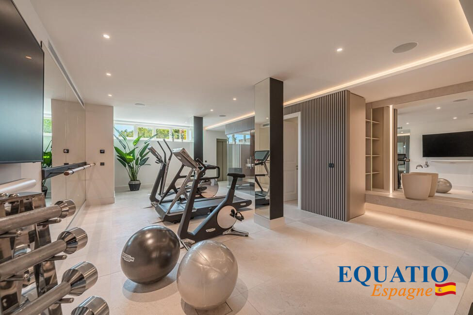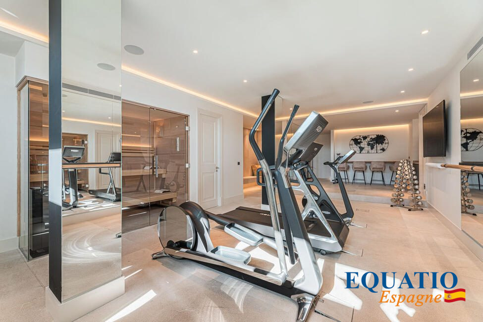 Sauna – Salle de Fitness avec des équipements Haut de Gamme – FANTASTIQUE Piscine d’eau salée et chauffée. ???