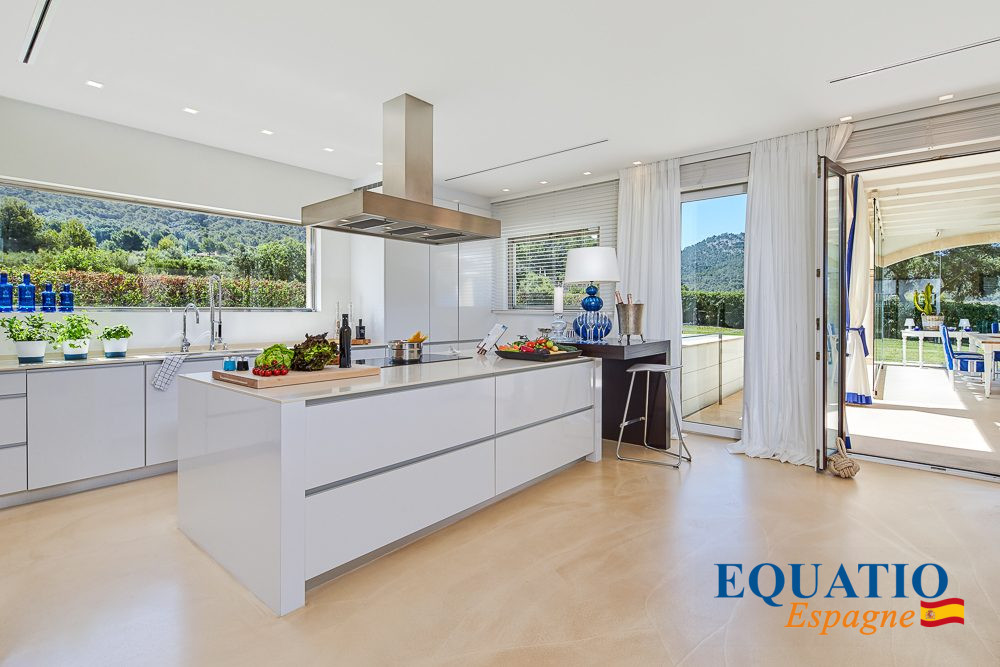 Salon spacieux avec Cheminée, 6 chambres confortables avec dressing, 6 salles de bains, cuisine ouverte Aménagée et Equipée avec son îlot central, 1 bureau, . . .