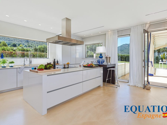 Salon spacieux avec Cheminée, 6 chambres confortables avec dressing, 6 salles de bains, cuisine ouverte Aménagée et Equipée avec son îlot central, 1 bureau, . . .