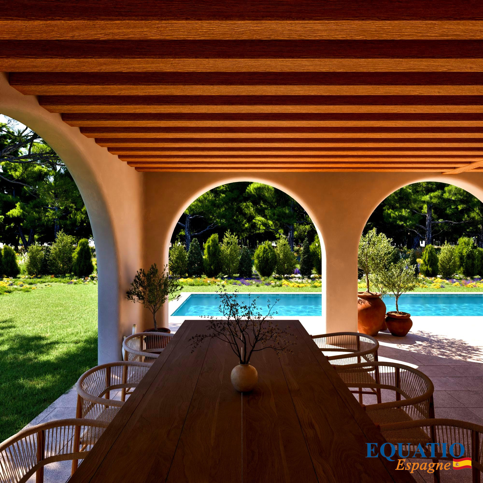 Grande terrasse, belle piscine et jardin luxuriant créent une atmosphère de sérénité raffinée.