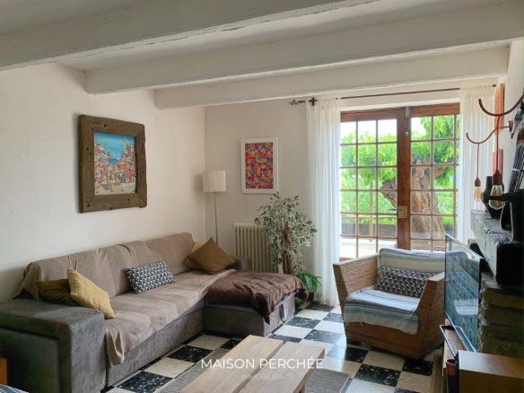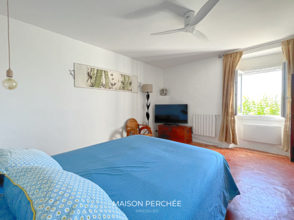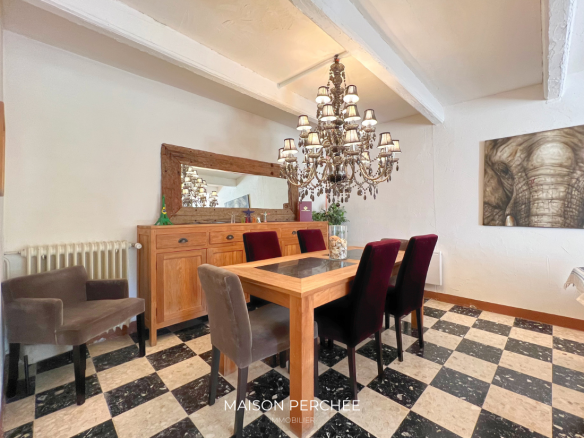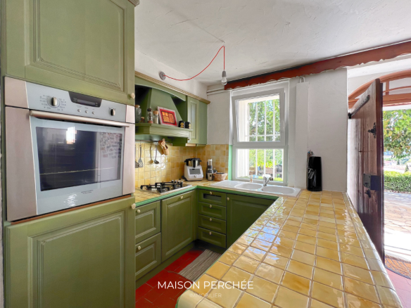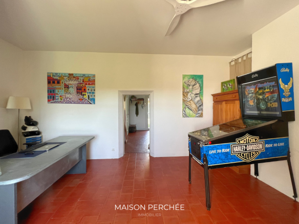 Un charmant escalier en pierre agrémenté d’un lavoir ancien mène à l’entrée de la propriété. Le rez-de-chaussée comprend une grande cuisine de type provençale ouverte sur un espace dînatoire, un séjour, une cave à vin, une buanderie avec douche et un WC séparé. Une annexe de 26m2 attenante au salon offre le potentiel d’un bel agrandissement de la pièce de vie.