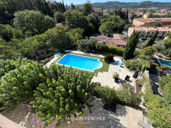 À l’extérieur, une vaste terrasse exposée Sud à ciel ouvert dispose également d’une partie ombragée par de vieux mûriers. En contrebas, un escalier dessert une piscine 10mx5m entourée d’une large terrasse ensoleillée à l’abri des regards. Un atelier fermé et un potager complètent l’ensemble.