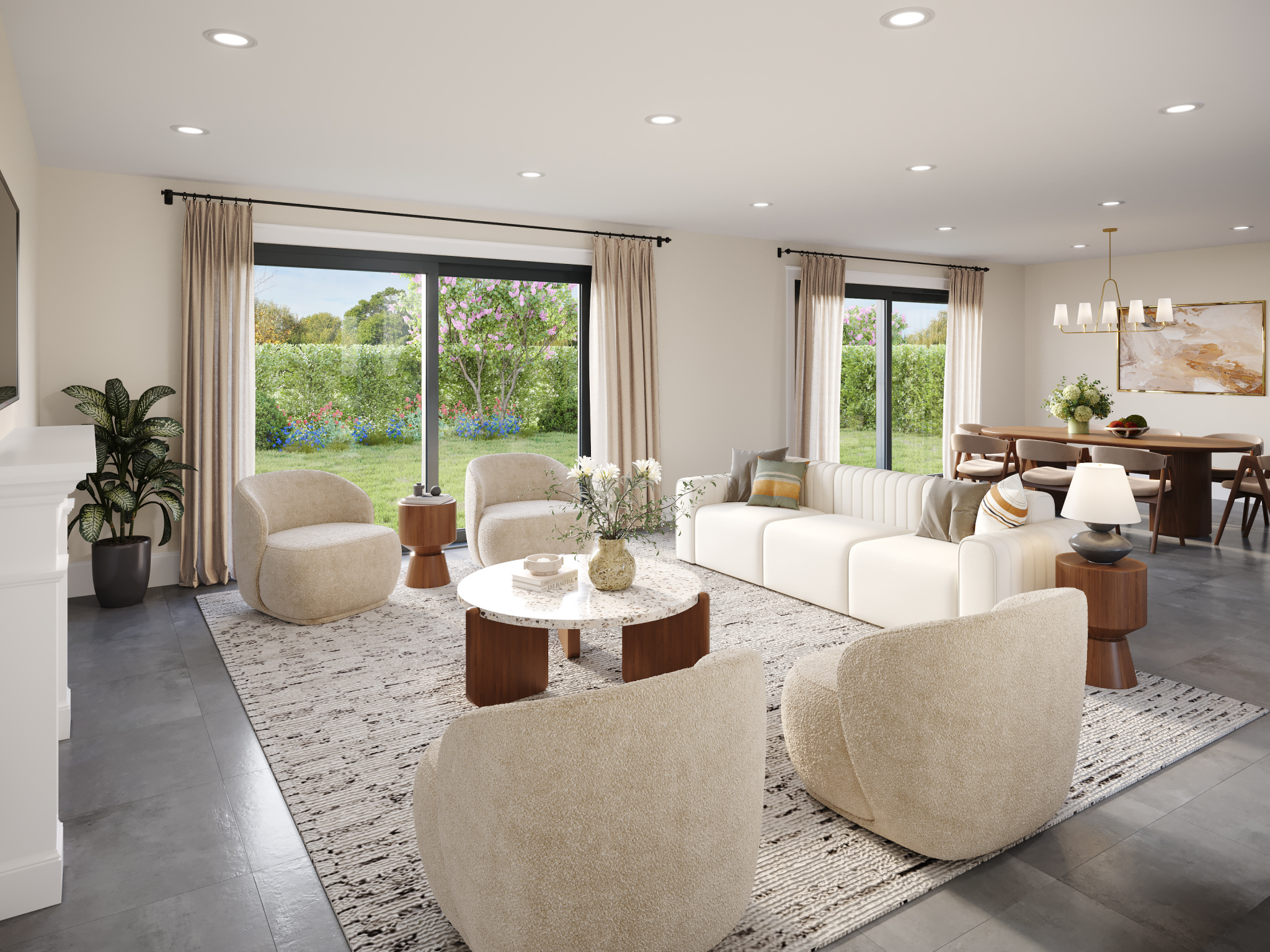 – Spacieuse pièce de vie de 60 m2 avec plusieurs baies vitrées