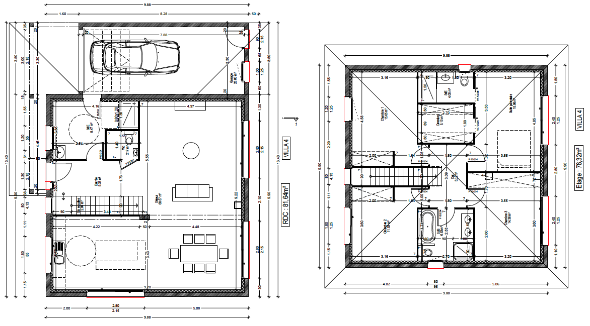 – 4 Chambres de 11,93 – 14,36 et 15,05 m2 – Comprenant 1 superbe suite parentale de 25 m2