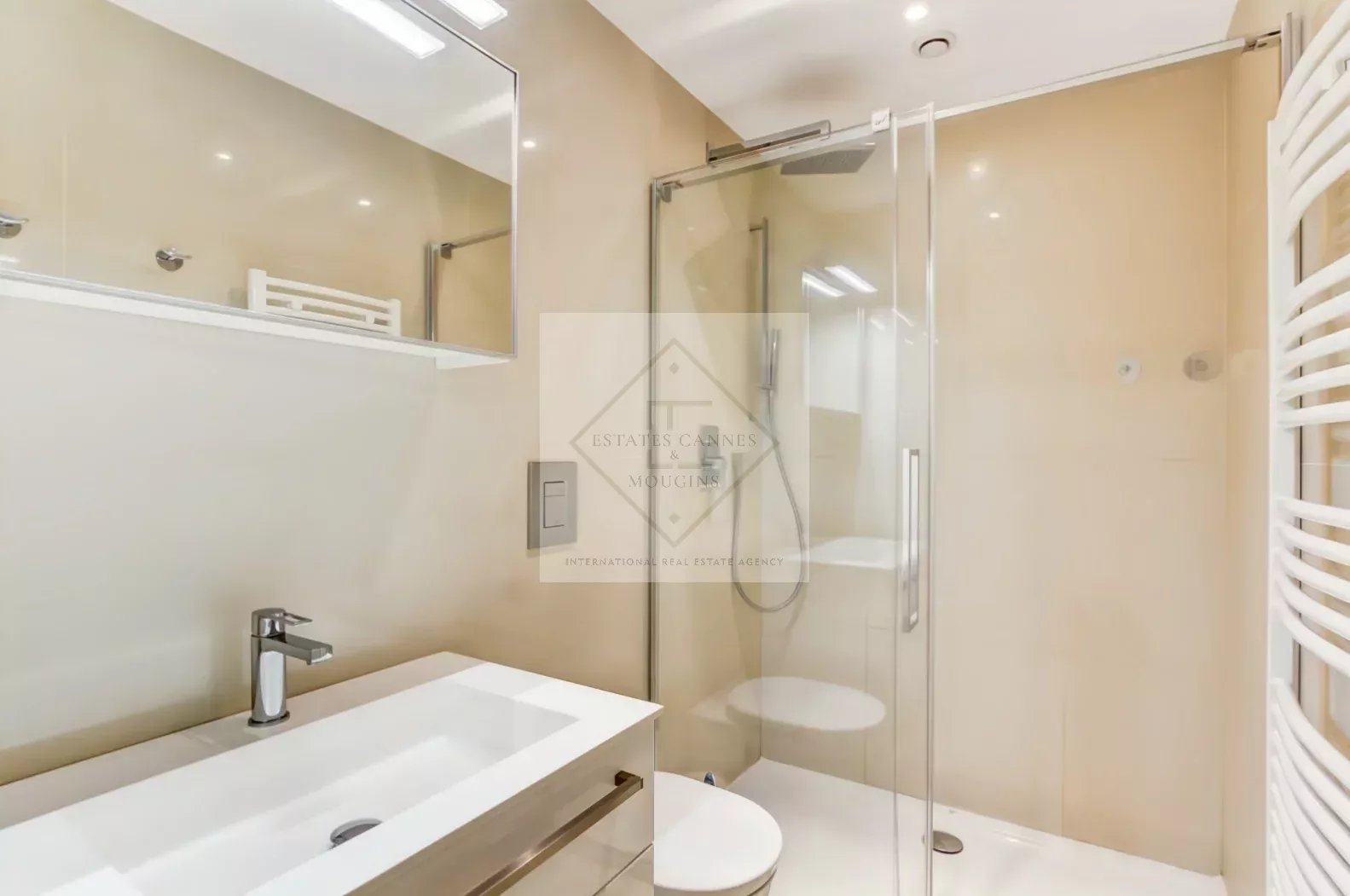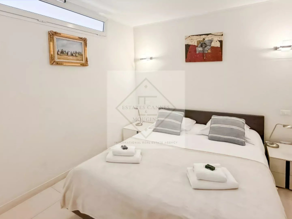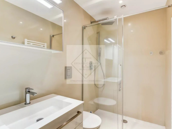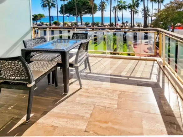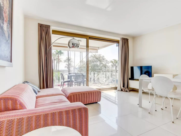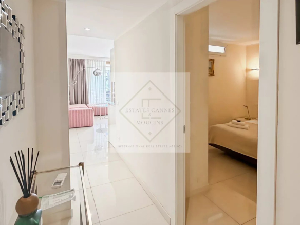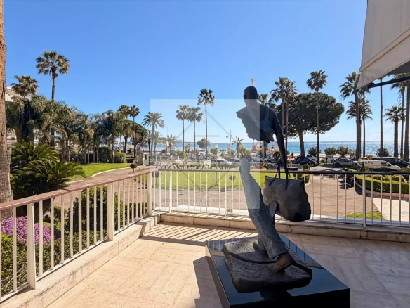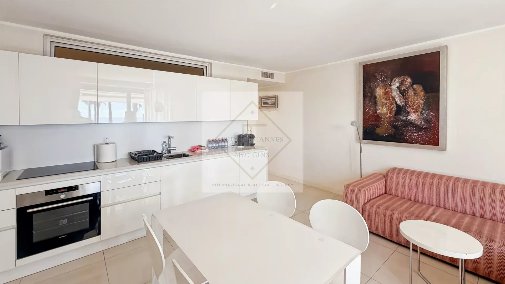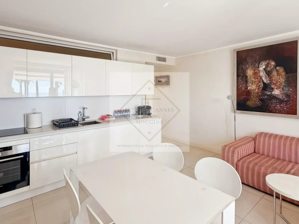 Situé en première ligne, face à la Méditerranée, cet appartement de 57 m², loi Carrez, incarne l’élégance et l’art de vivre cannois dans toute sa splendeur.