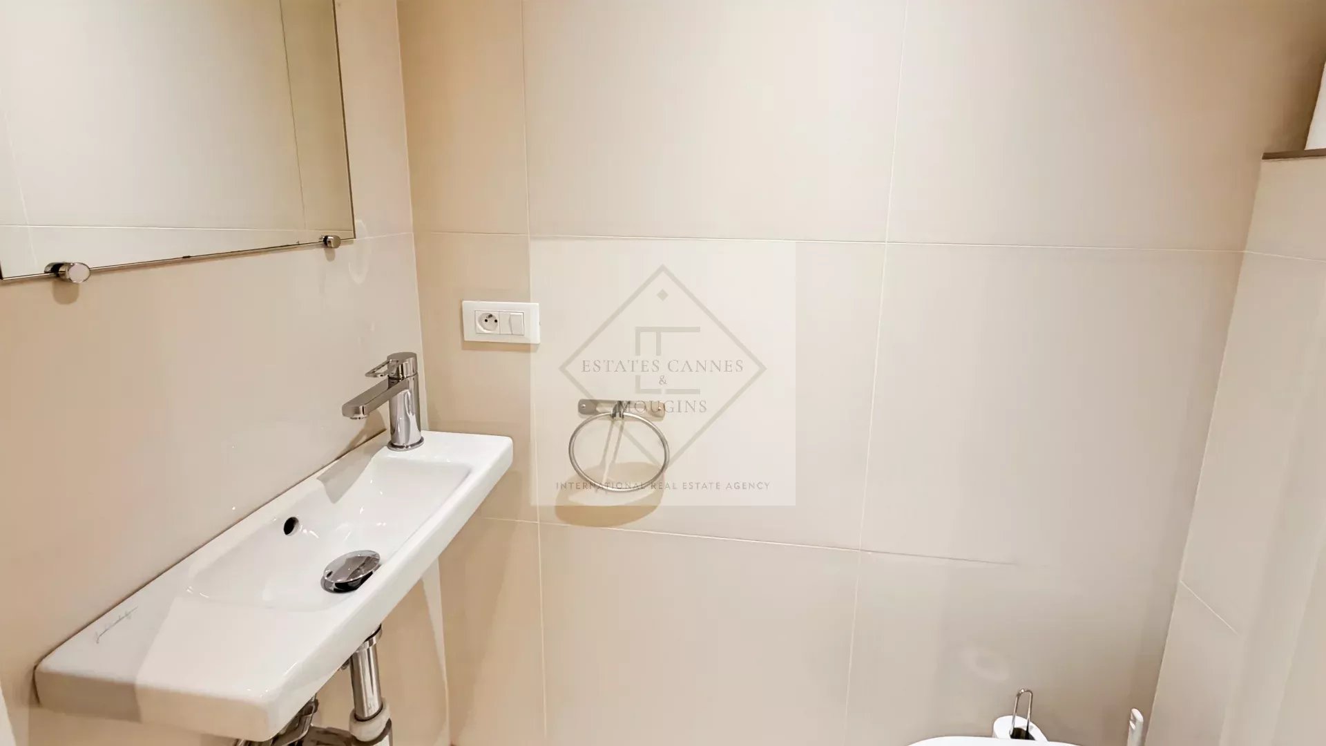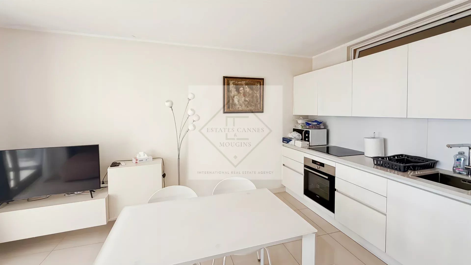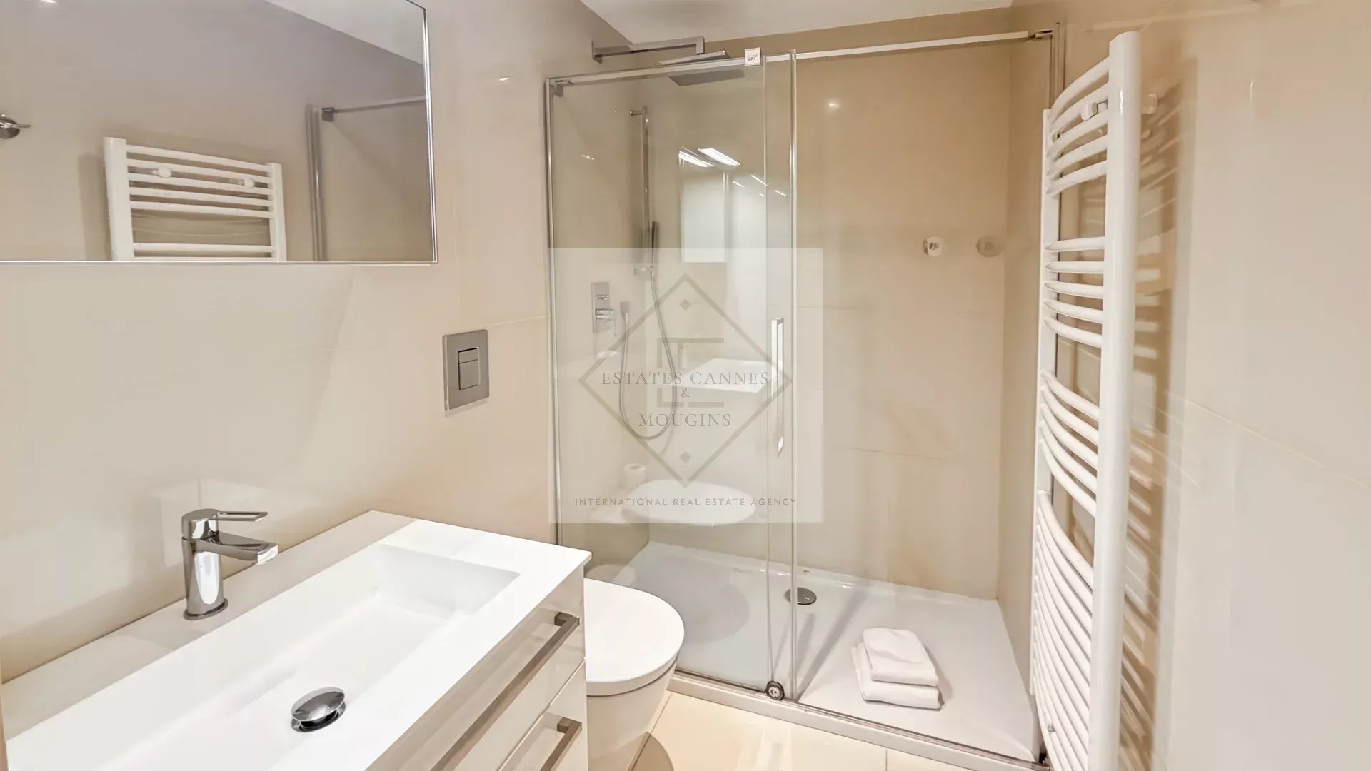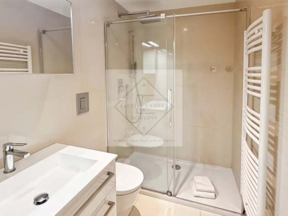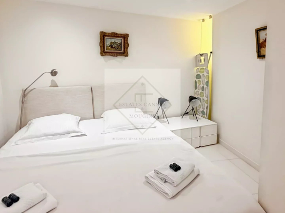 Situé en première ligne, face à la Méditerranée, cet appartement de 57 m², loi Carrez, incarne l’élégance et l’art de vivre cannois dans toute sa splendeur.