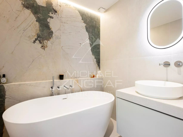 Entièrement rénové avec des matériaux de grande qualité, l’appartement se compose comme suit : une entrée, un vaste espace de vie et une cuisine semi-ouverte équipée de 46,08 m², avec accès à une très belle terrasse ensoleillée de 32,32 m² ; deux belles chambres, dont une chambre en suite avec sa salle de bains avec WC et un grand dressing, donnant toutes deux sur un balcon avec vue dégagée ; une salle d’eau et un WC invité, ainsi que de nombreux rangements.