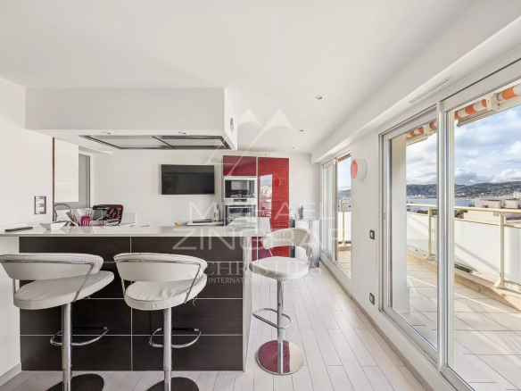 Idéalement situé en hypercentre de Juan-les-Pins, au dernier étage d’un immeuble de standing sécurisé et gardienné, ce toit-terrasse d’exception bénéficie d’une vue mer panoramique à 360° et de prestations de grande qualité.
