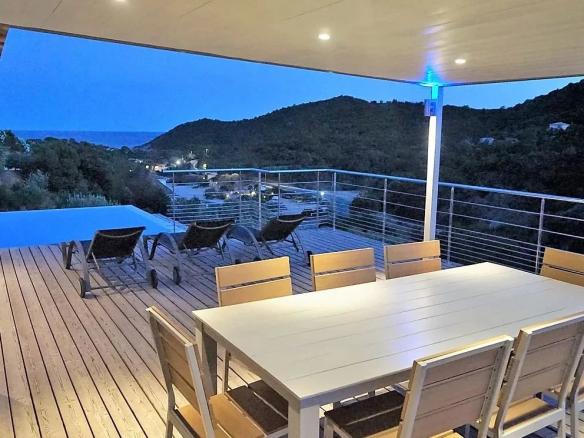 Grande terrasse avec vue sur la mer Grand salon et salle à manger avec cuisine ouverte entièrement équipée