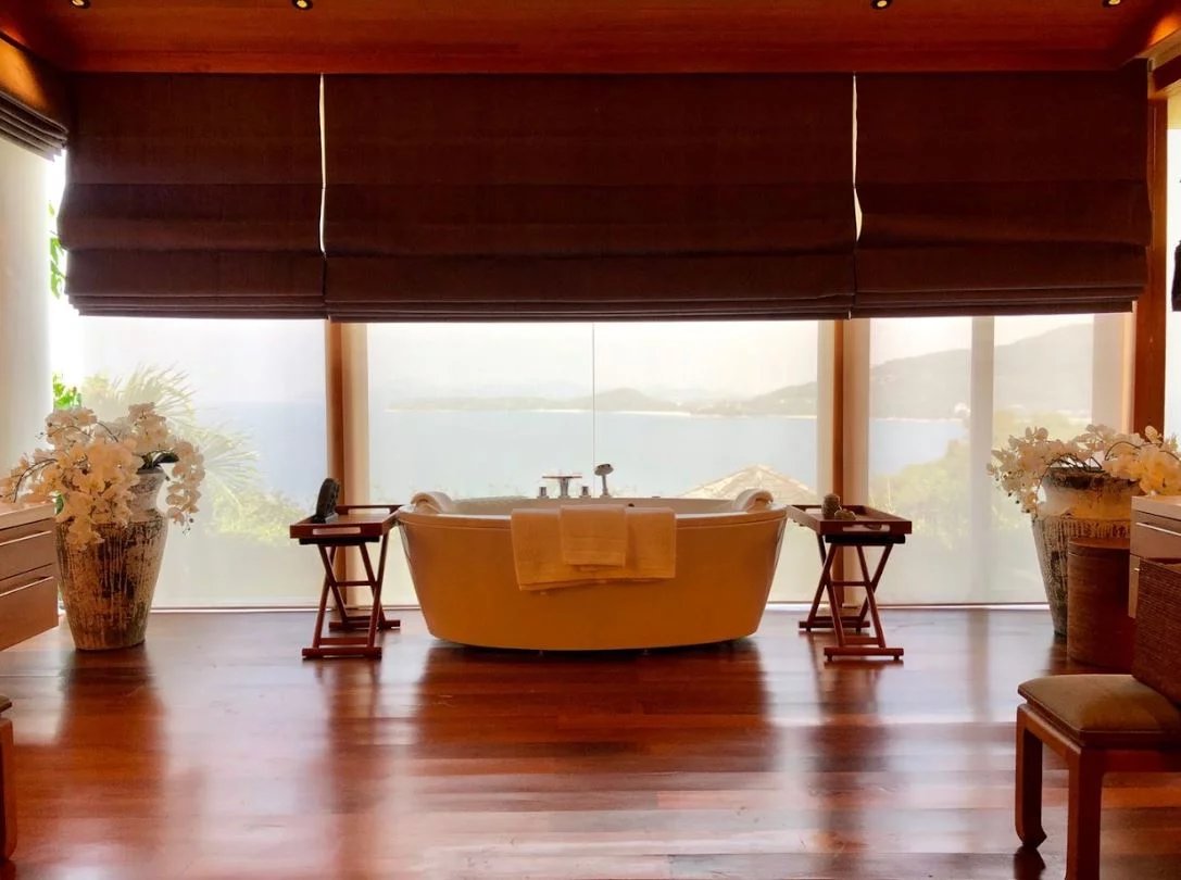 Les piscines extérieures spacieuses et rafraîchissantes sont fabriquées à partir de carreaux de céramique faits à la main et de bordures en granit. Les planchers intérieurs sont rafraîchissants et fabriqués à partir de bois dur de teck et de carreaux de céramique.