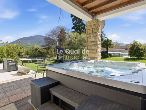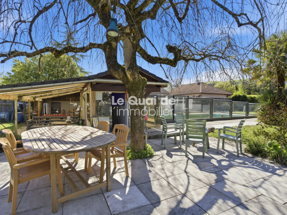 Les extérieurs, implantés sur un terrain de 1 863 m², sans vis-à -vis, offrent un cadre préservé avec piscine 10 X 5 et cuisine d’été.