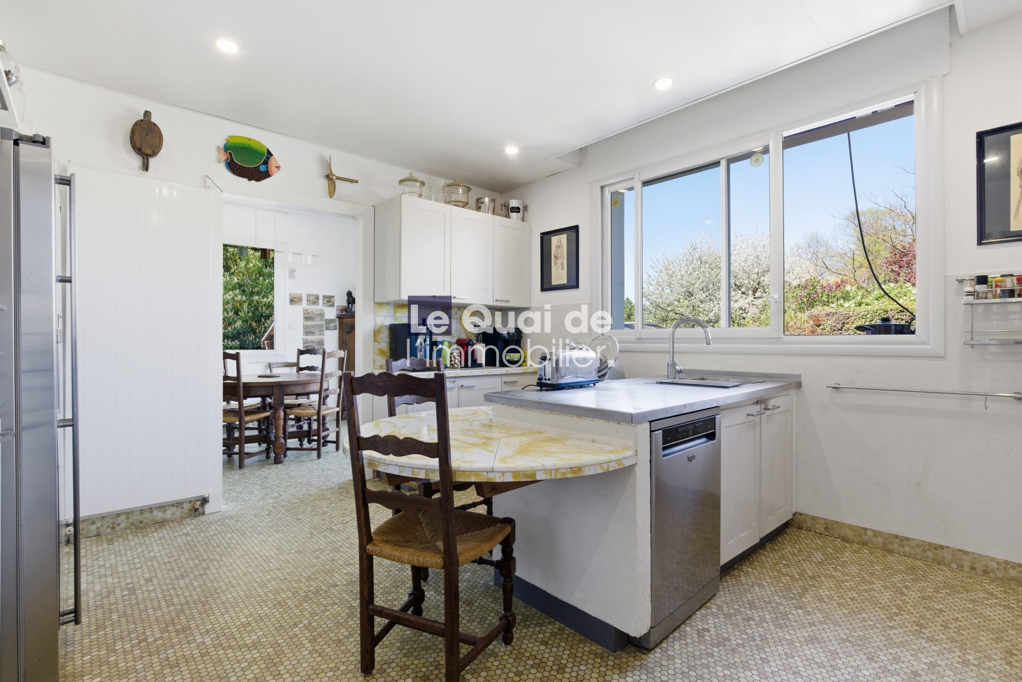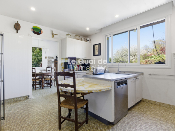 La cuisine et la salle à manger s’ouvrent sur une terrasse côté nord, idéale pour les périodes estivales.