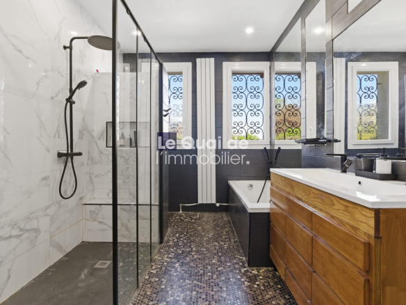 À l’étage, un appartement d’environ 185 m², pouvant être totalement indépendant, offre une véritable autonomie d’usage et de nombreuses possibilités d’exploitation.
