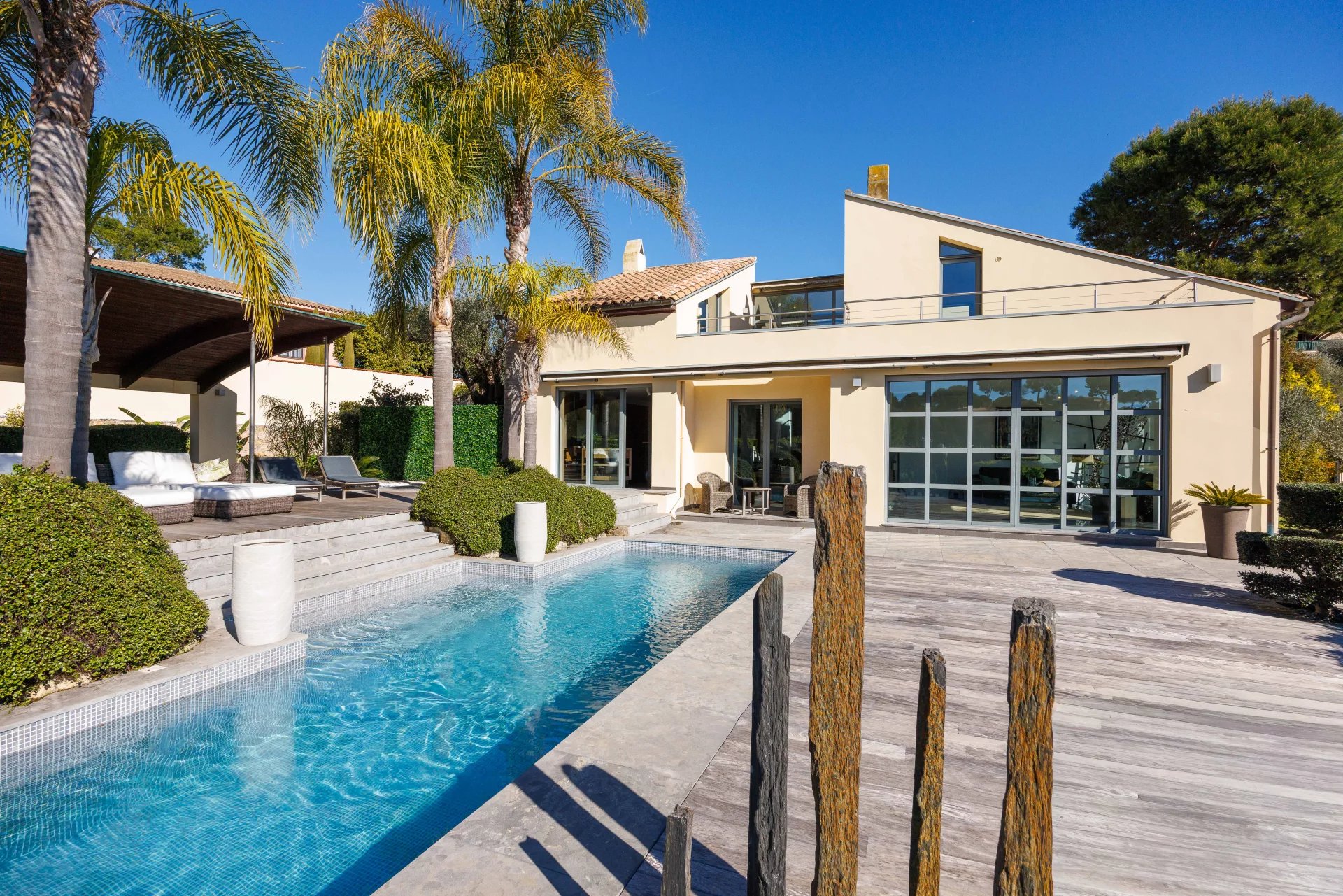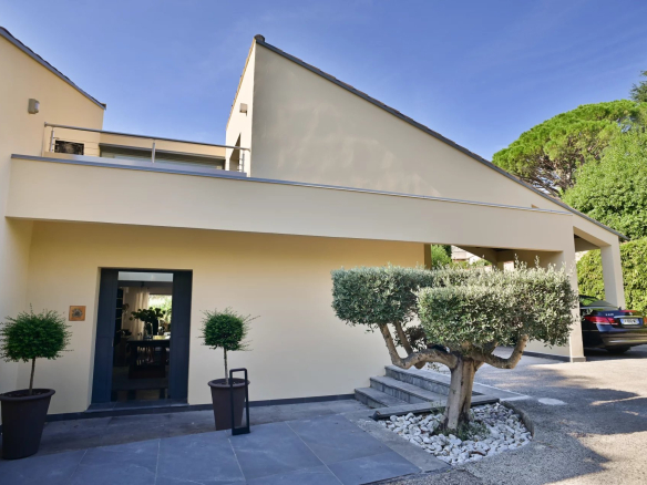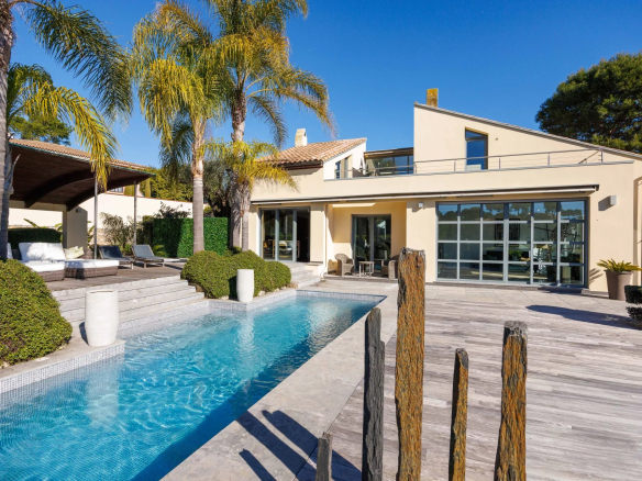 La villa, dans un style original et contemporain, conçue par François Druet, a été achevée en 1983. Cette villa a ensuite fait l’objet d’importantes modifications. En 2024, la villa a d’ailleurs été totalement repeinte, à la fois à l’intérieur comme sur les façades. La Villa est également équipée d’un récent système de refroidissement et de chauffage Daikin (pompes à chaleur). La propriété très bien entretenue est aujourd’hui prête pour un emménagement immédiat, sans travaux.