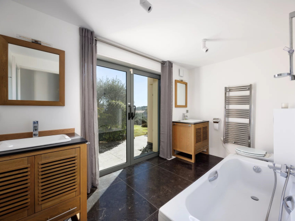 La propriété dispose d’un arrosage automatique ainsi que d’un éclairage extérieur dans le jardin et autour de la villa. L’assainissement privatif est aux normes.