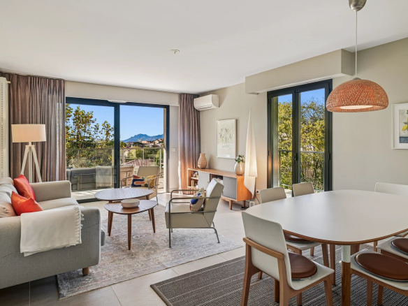 L’Elegante propose 15 appartements, tous donnant sur le parc de la résidence, offrant ainsi une luminosité exceptionnelle. Les appartements, allant du 2 au 4 pièces, sont dotés de finitions de haute qualité et d’un style épuré, répondant aux normes les plus récentes en termes d’isolation et de climatisation. Chaque appartement est équipé de volets électriques roulants centralisés et de panneaux solaires sur le toit.