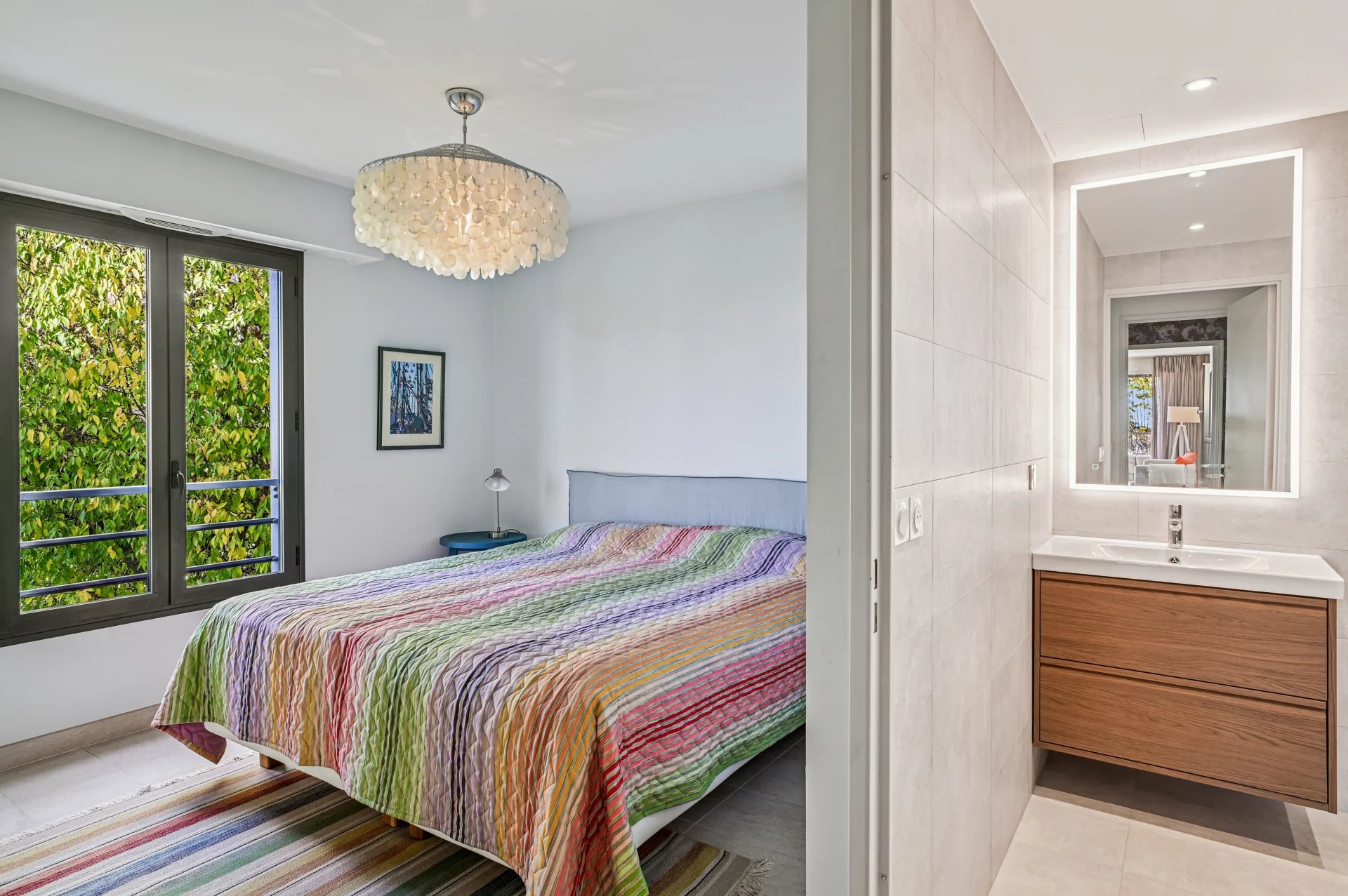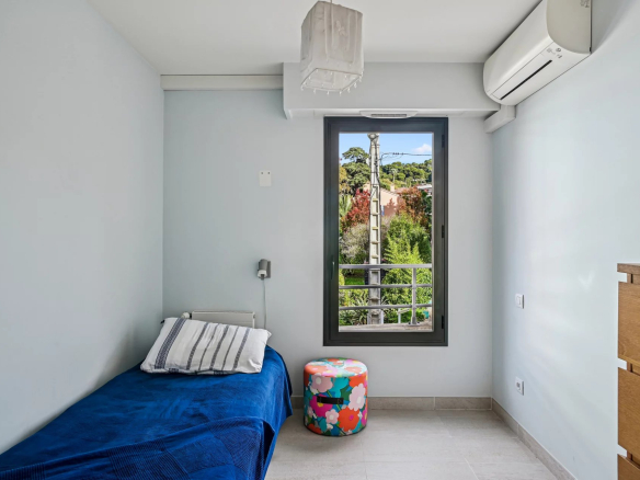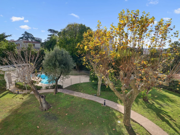 La résidence est entourée d’un magnifique jardin arboré de palmiers, d’un micocoulier centenaire, d’un arbre de Judée, de lauriers roses, de mimosas et de citronniers. La piscine, située dans un cadre privé, offre un lieu de détente et de relaxation absolue.