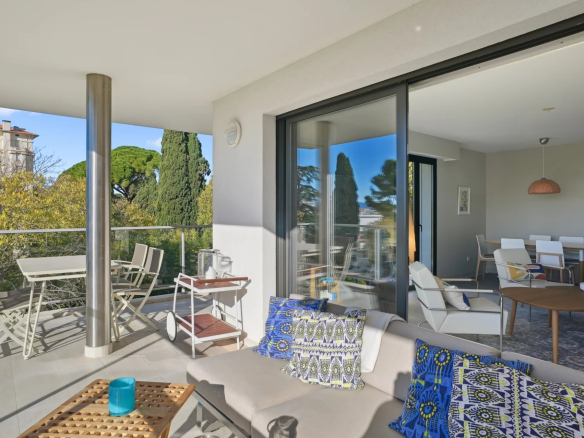 EXCLUSIVITE – CANNES – Au cœur du quartier résidentiel de Montrose – 4p avec terrasse, aperçu mer et double garage. Construction récente. Piscine