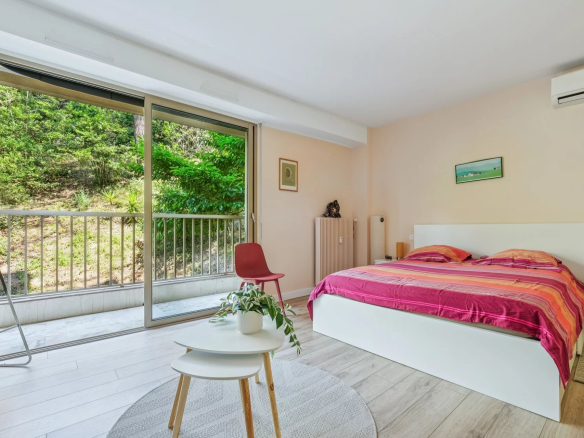 Très lumineux, Il se compose d’une entrée, d’un séjour / salle à manger, d’une cuisine équipée indépendante avec accès terrasse, de deux belles chambres climatisées en suite ( une avec salle de bain et une avec salle d’eau et WC), dont l’une donne sur un balcon vue verdure et l’autre sur la terrasse principale de plus de 32 m2 exposée est, sud et ouest avec une superbe vue dégagée et un aperçu mer.