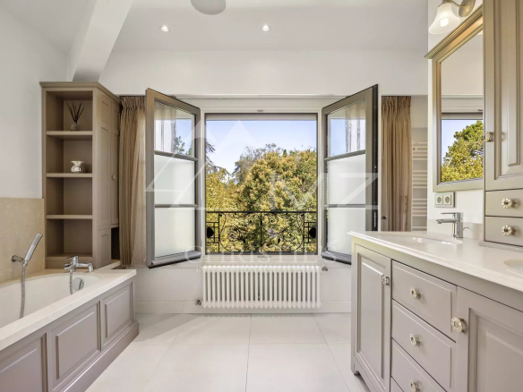 Cette maison de prestige d’environ 239 m² est un véritable joyau architectural. Elle se compose d’une entrée majestueuse qui vous invite à découvrir un vaste séjour, cuisine et salle à manger aux prestations haut de gamme. Les trois chambres, chacune avec leur salle de bain, sont spacieuses et confortables, offrant une vue imprenable sur le jardin paysager. La salle de bain de la chambre de maître est équipée d’une baignoire îlot et d’une douche à l’italienne pour un confort maximal. Les toilettes sont indépendantes pour plus d’intimité.