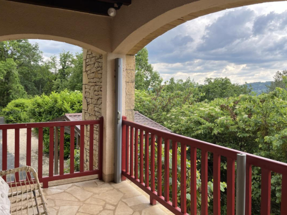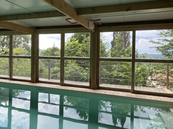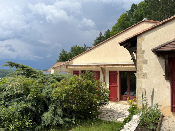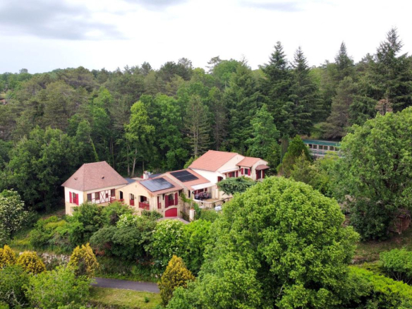 Exclusivité! Nichée dans un coin de verdure sur les hauteurs de Montignac avec très belle vue, propriété comprenant une grande maison principale et une maison d’amis sur 1,6 ha. Piscine couverte. Nombreuses terrasses