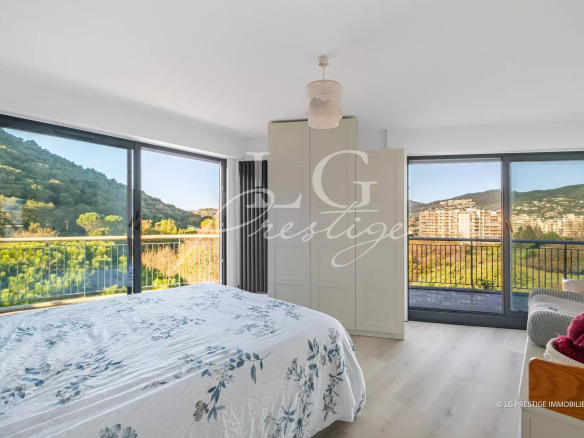 Entièrement rénové avec des matériaux de qualité, il se compose d’un vaste séjour avec cuisine, d’une magnifique véranda qui donne sur la terrasse, offrant une triple exposition Est – Sud – Ouest.
