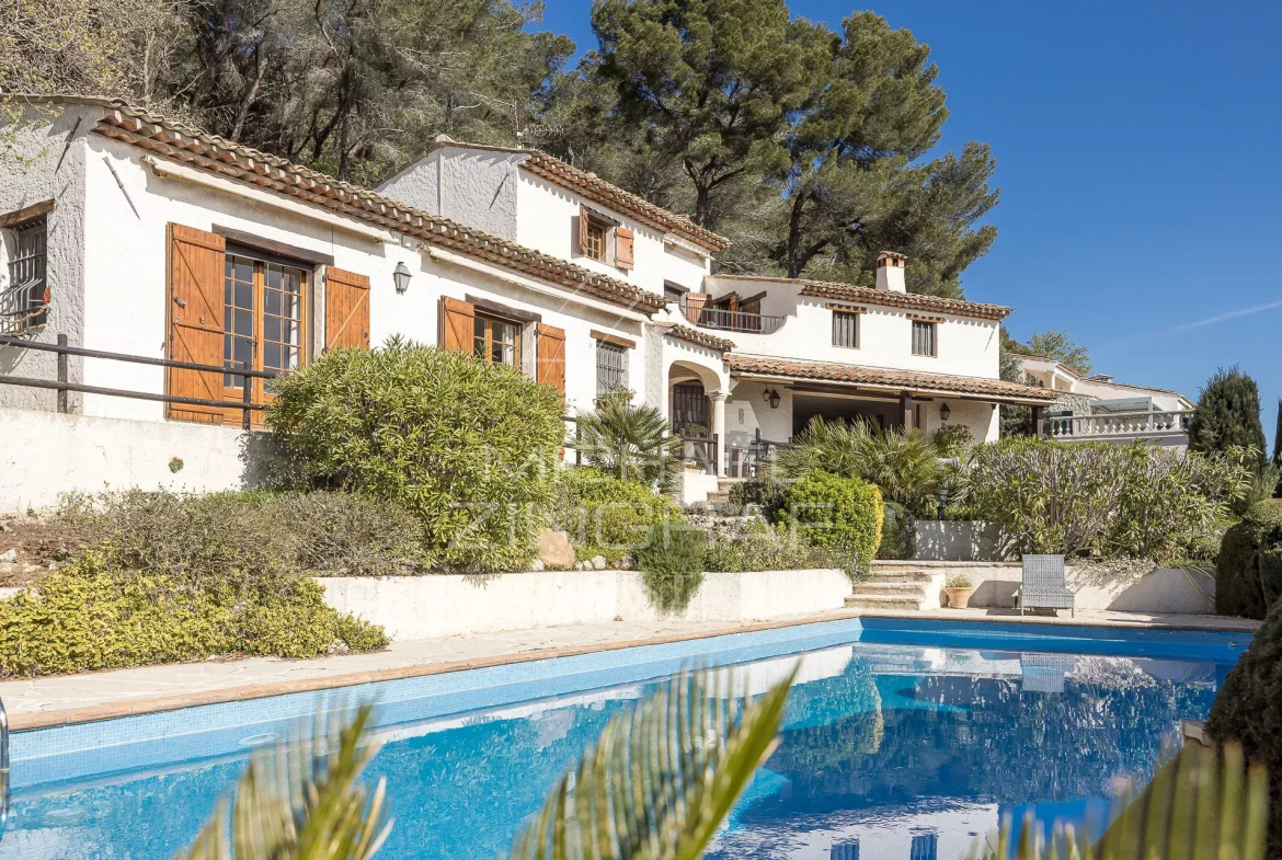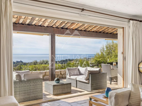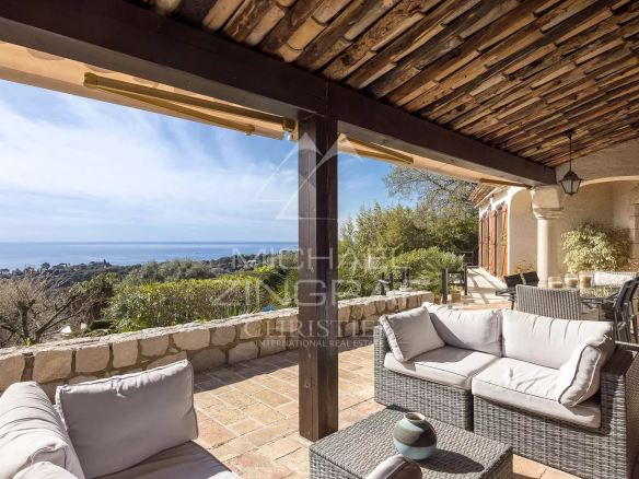 Idéalement située dans un environnement résidentiel calme et recherché, à proximité immédiate de Cannes et Antibes, cette élégante villa de style provençal bénéficie d’une vue panoramique exceptionnelle sur la mer, s’étendant des Alpes du Sud au Cap d’Antibes, jusqu’aux Îles de Lérins.