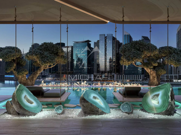L’immeuble dispose de trois piscines, dont une spectaculaire terrasse de piscine avec bar extérieur et changing room. Un jardin de cristal apporte une touche architecturale unique et raffinée.