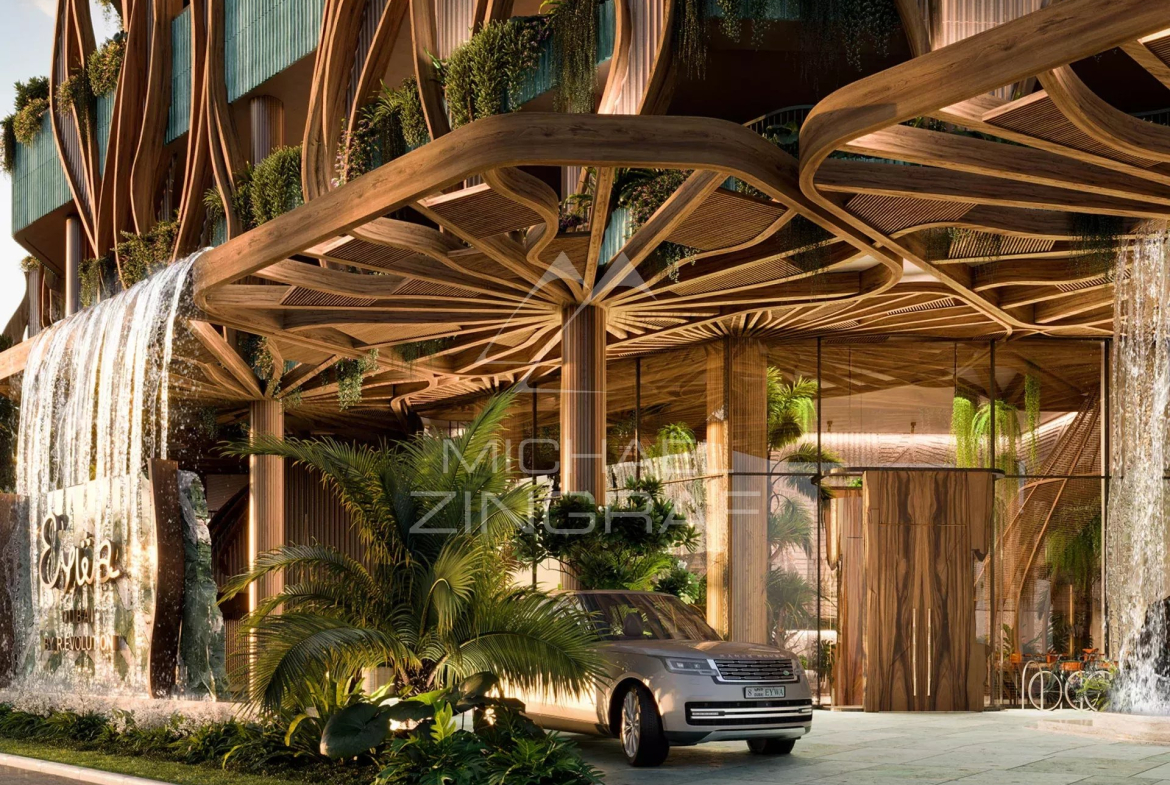 Inspirée de l’arbre Banyan, symbole d’équilibre et de croissance, l’architecture organique d’EYWA évoque un arbre de vie monumental dont les racines et les branches s’entrelacent harmonieusement. Chaque détail du bâtiment a été pensé selon les principes ancestraux du Vastu Shastra, subtilement associés aux technologies les plus avancées, afin de créer un environnement énergétiquement équilibré et profondément apaisant.