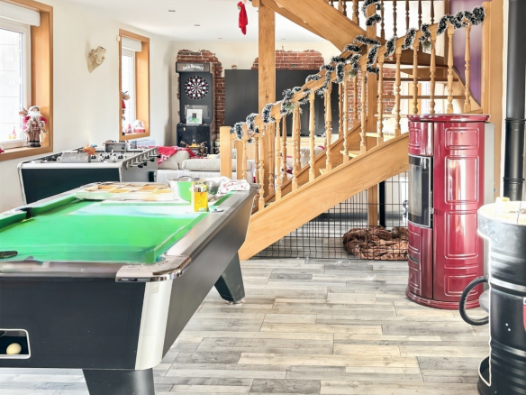 La maison bénéficie d’un équipement moderne et économique grâce à une pompe à chaleur air/eau et à des panneaux photovoltaïques qui alimentent l’ensemble de la propriété, permettant une réduction importante des dépenses électriques.