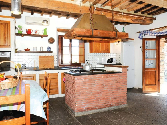 La propriété est située en position dominante sur deux niveaux comprenant : cuisine, salle à manger avec cheminée, salon, grand séjour avec cheminée et salle d’eau au rez-de-chaussée. Au premier étage, auquel on accède par un escalier extérieur et intérieur, on trouve un grand salon avec table de billard, cinq chambres et deux salles de bain. La propriété dispose d’une dépendance d’env. 100 m². Le terrain entourant la maison est d’environ un hectare entièrement clôturé avec environ 150 oliviers, un puits, et une belle piscine.