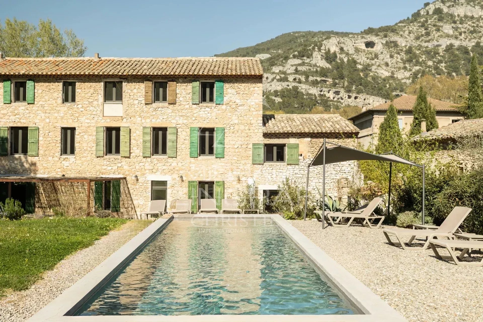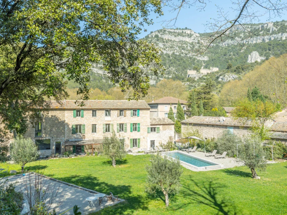 Exclusivité – À Fontaine-de-Vaucluse, au pied des falaises et à proximité immédiate de la Sorgue, cette Bastide en pierre du XVIIe siècle a fait l’objet d’une rénovation complète entre 2020 et 2021. Le résultat est une propriété de caractère, élégante et fonctionnelle, implantée dans un environnement naturel exceptionnel, sur un terrain de 3 620 m² entièrement paysagé.