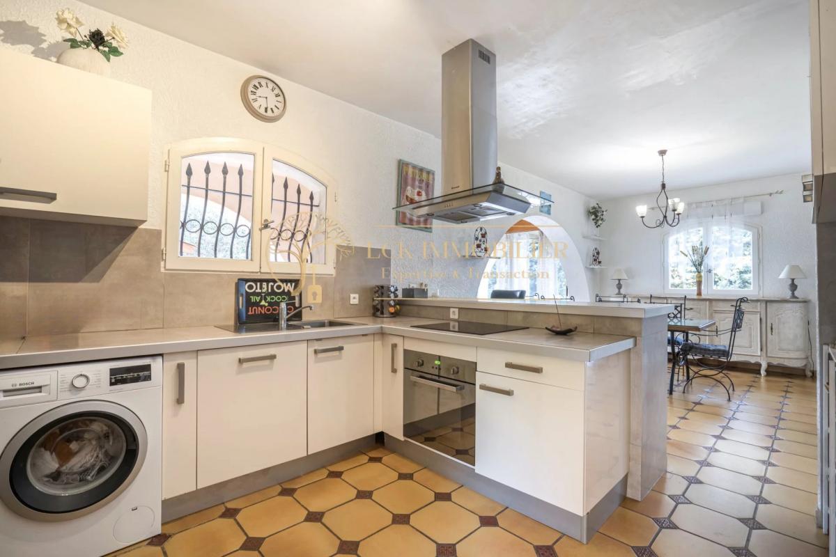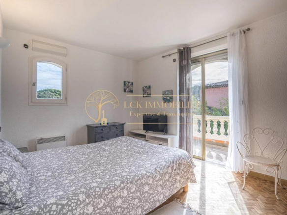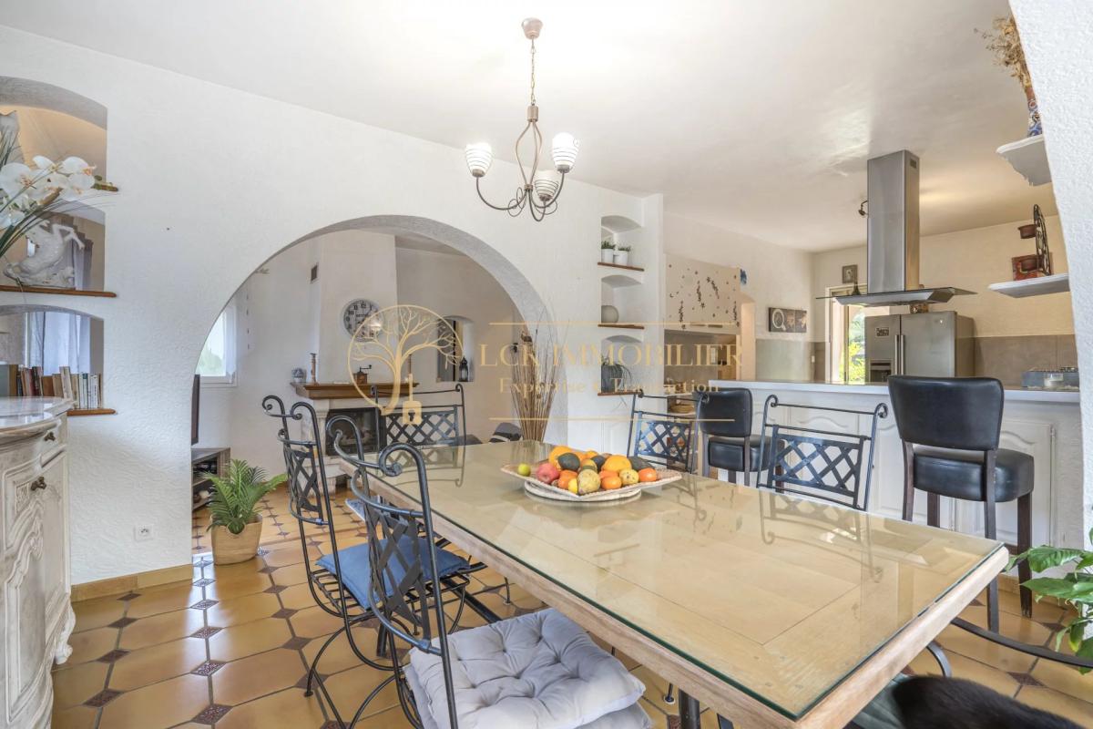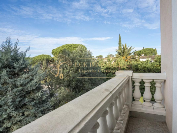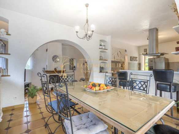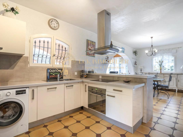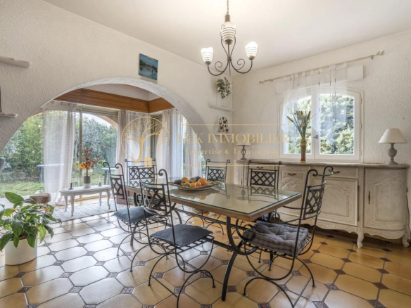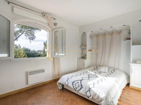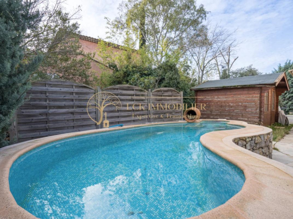 Située dans un quartier pavillonnaire calme et recherché de Fréjus, cette propriété d’environ 175 m² habitables offre un cadre de vie paisible et de belles possibilités d’aménagement. La maison principale se compose de 4 pièces aux volumes généreux, avec un séjour traversant ouvrant sur un jardin arboré sans vis-à-vis, agrémenté d’une piscine.